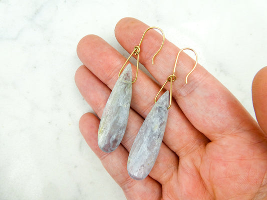 Sky Blue Kyanite Tear Drop 14k Yellow Gold Dangle Earrings