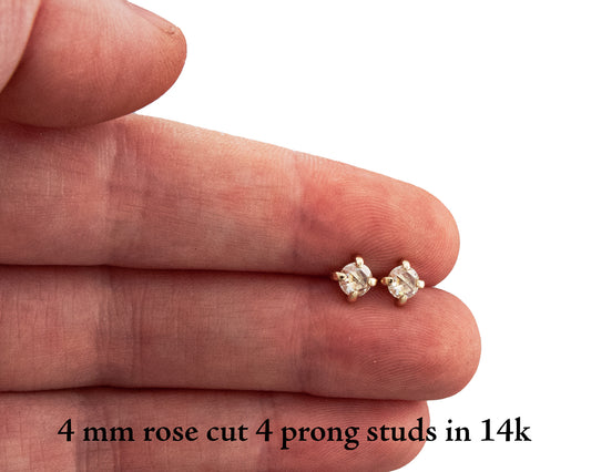 Rose-Cut Moissanite 4-Prong Studs in 14k Yellow Gold | Ready to ship