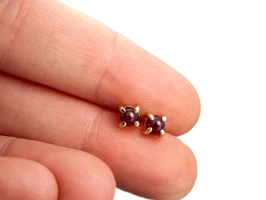 Small Ruby Cabochon Stud Earrings in 14k Gold Prong Settings | Choice of rose, yellow or white gold