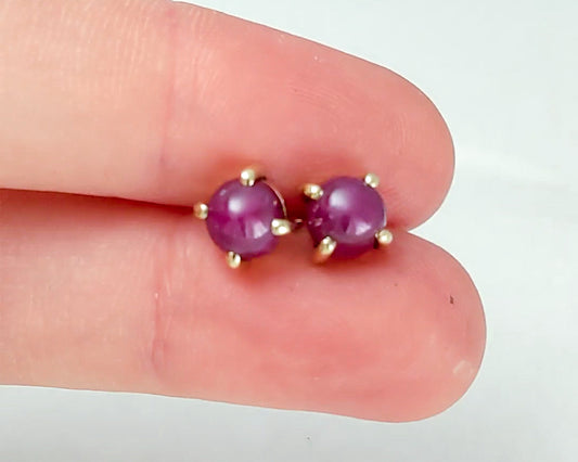 Four Prong Ruby Cabochon Studs in 14k Yellow Gold | 6 mm round natural ruby cabochon earrings