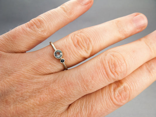 Two-Stone Aquamarine and Sapphire Ring in 14k White Gold | Moi et Petite Toi