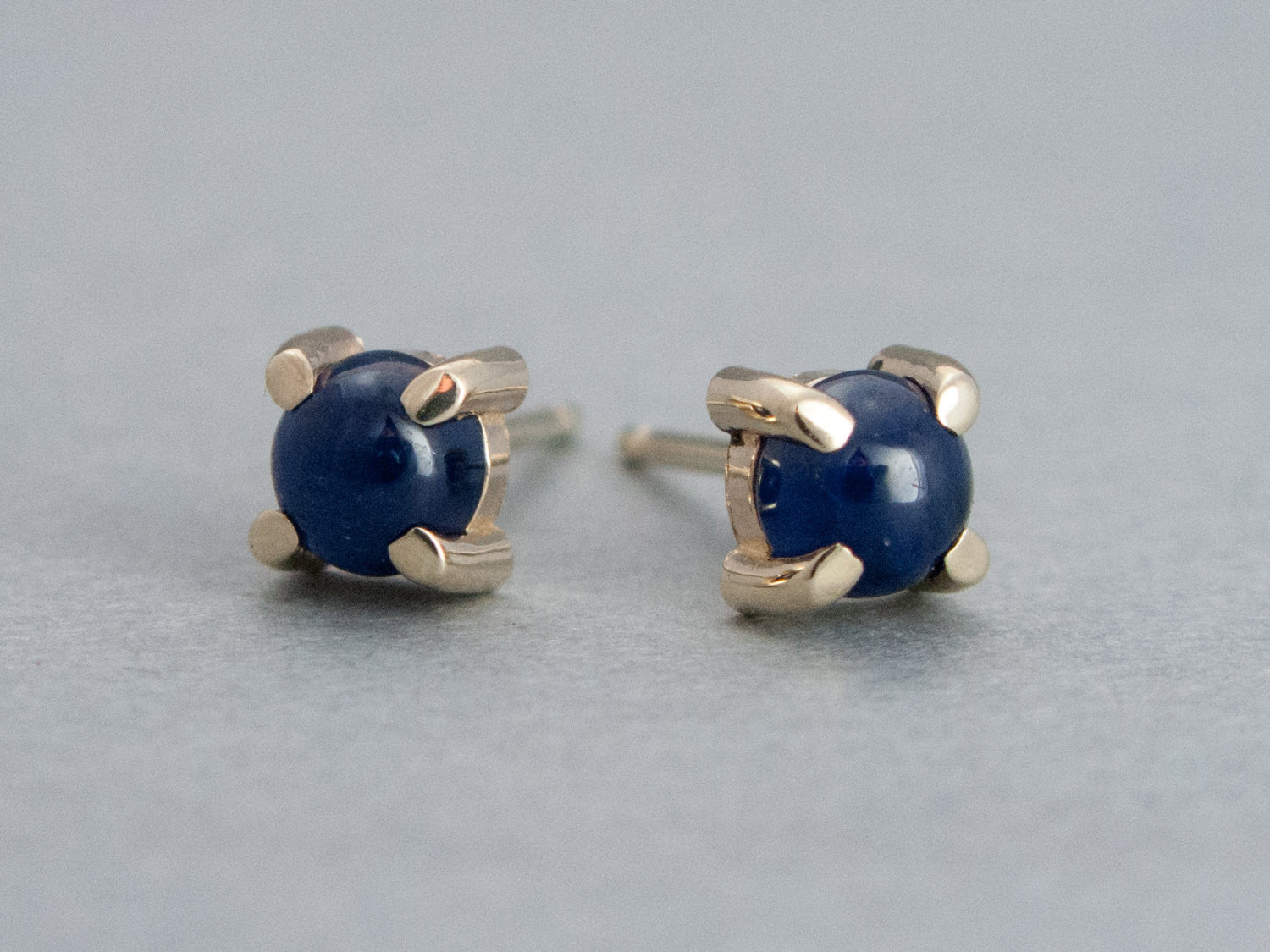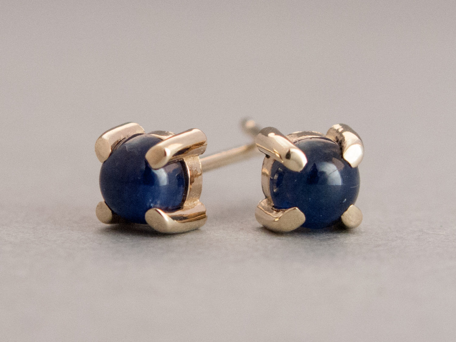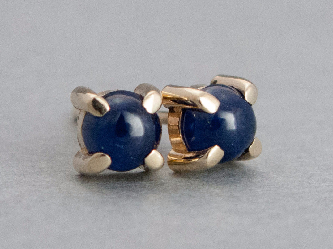 Blue Sapphire Cabochon 4 Prong Studs in 14k Gold - 4mm Round cabochon earrings in 14k rose, yellow or white gold