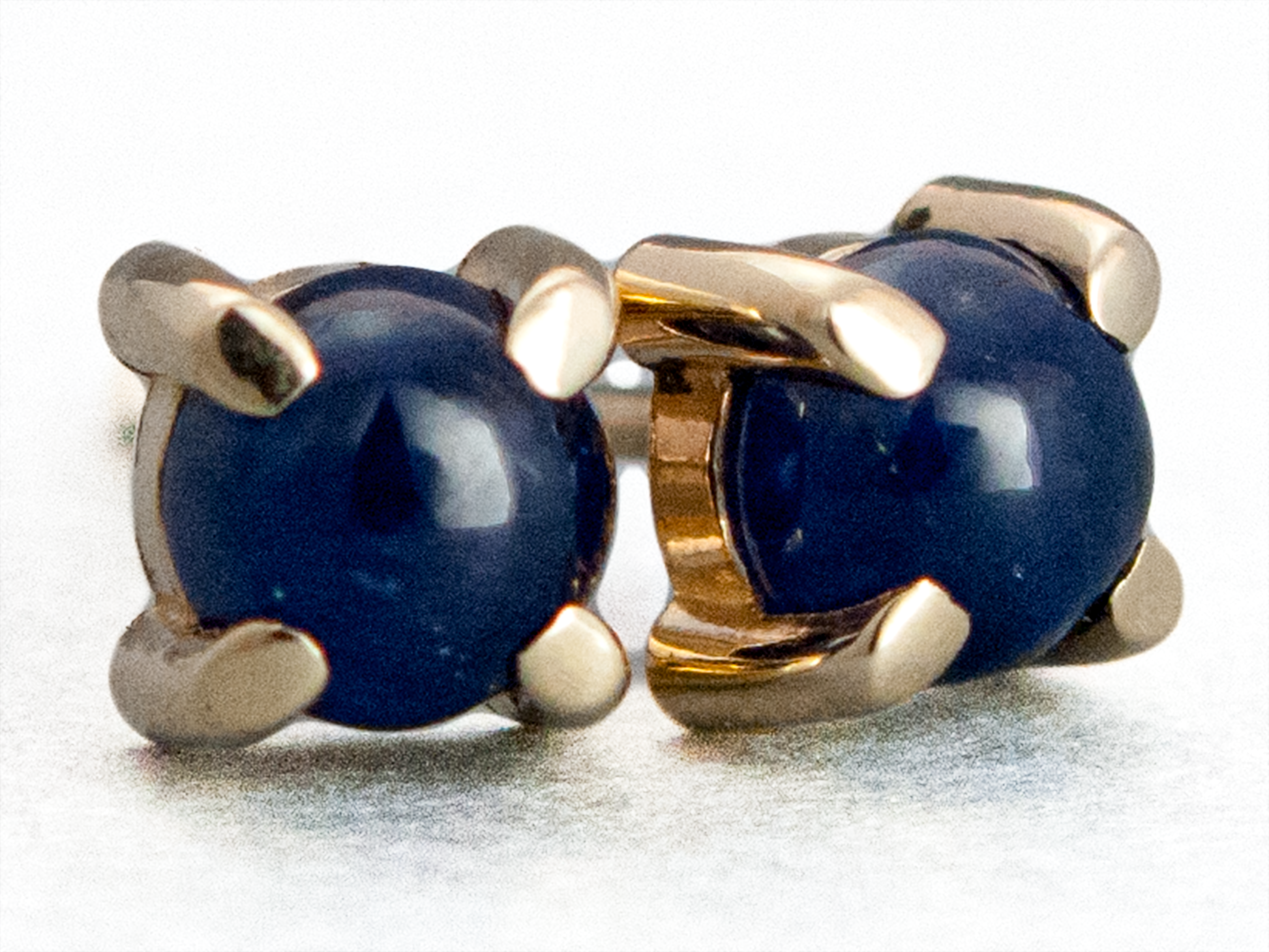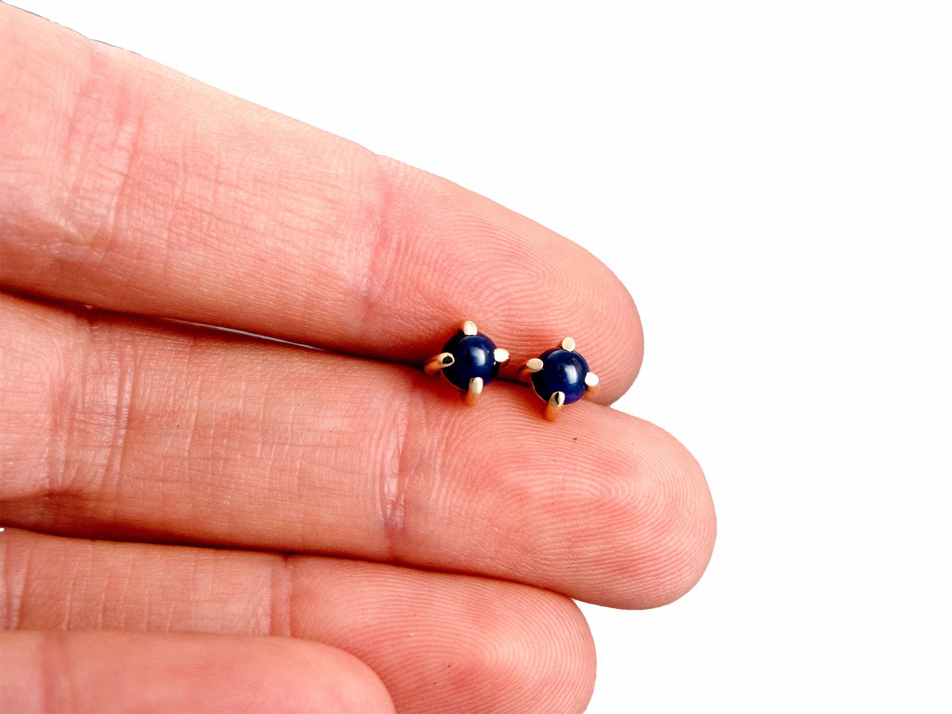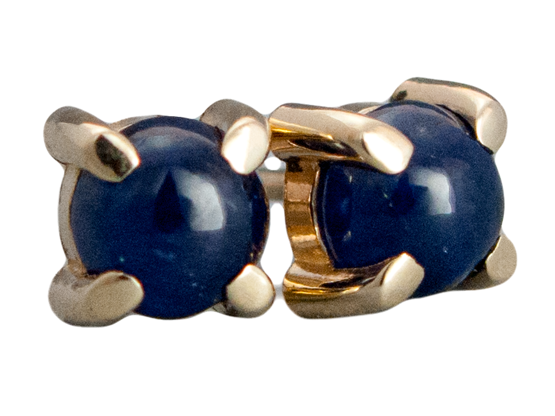 Blue Sapphire Cabochon 4 Prong Studs in 14k Gold - 4mm Round cabochon earrings in 14k rose, yellow or white gold