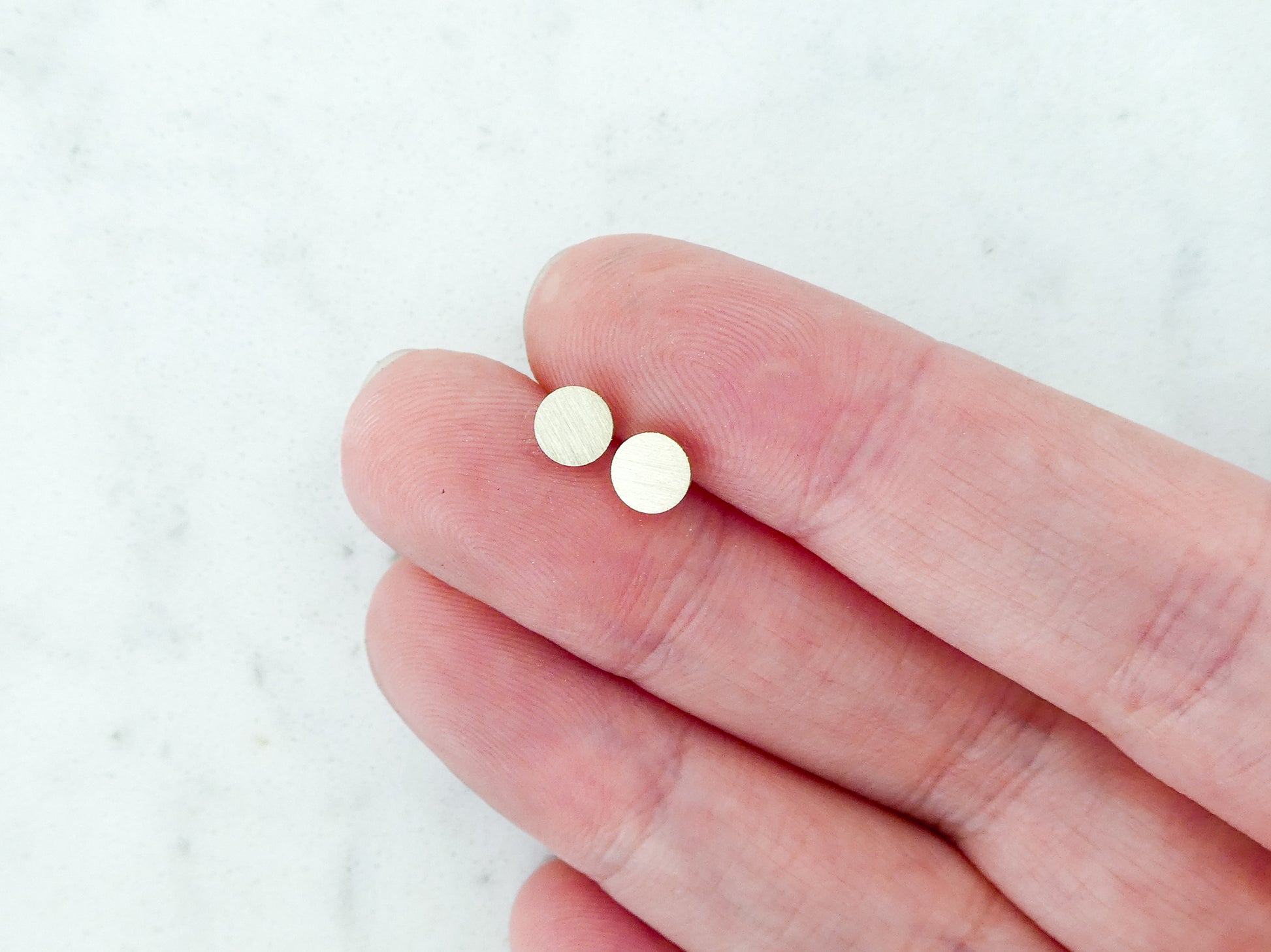 Gold Disk Studs in Solid 14k Gold, 1/4 inch (6mm) round flat earrings in matte 14k yellow, white or rose gold