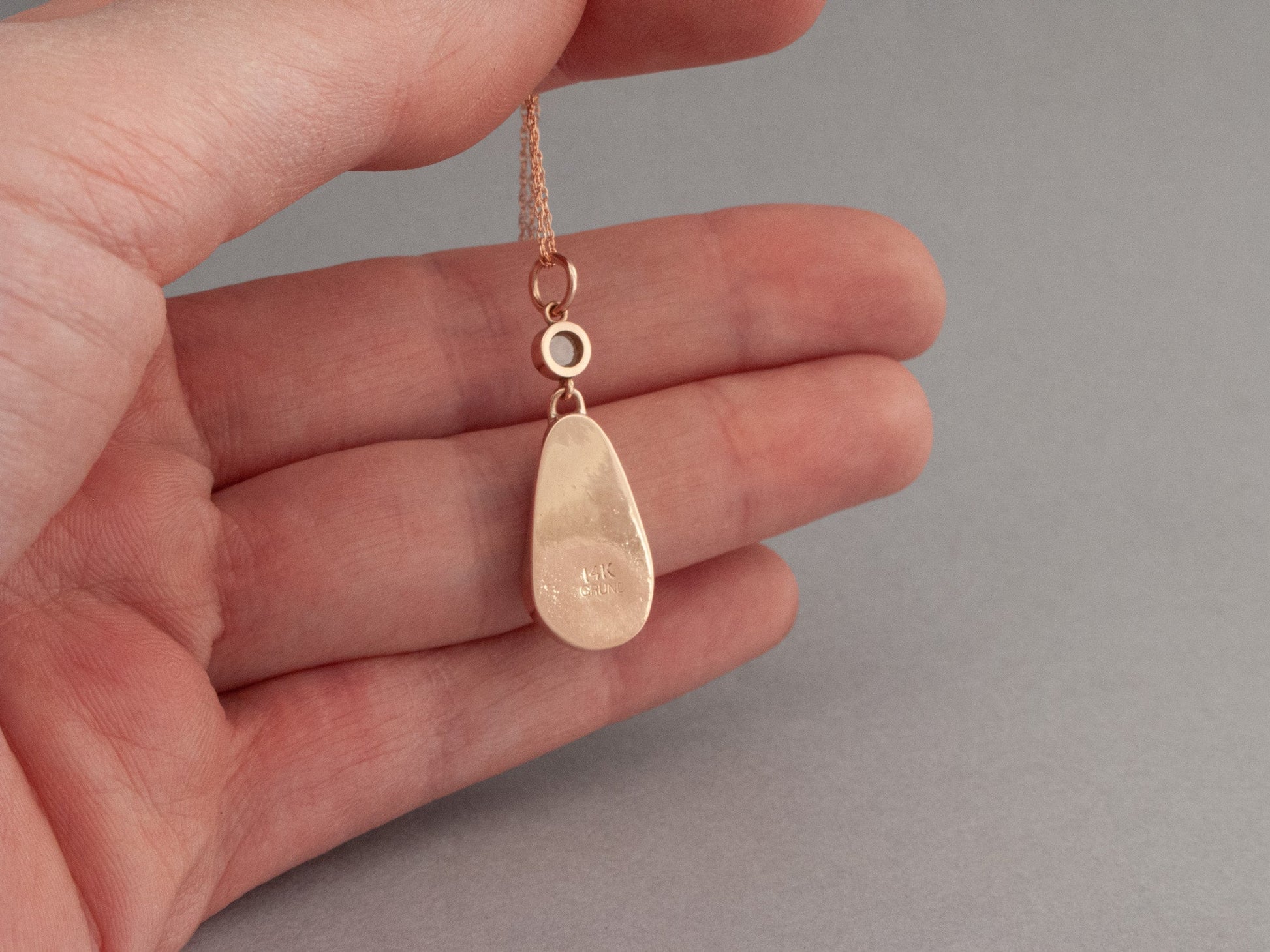 I've set this gorgeous 6.4 carat Old stock Kingman turquoise teardrop in a handmade 14k rose gold bezel and paired it with a .26 carat (3.5mm) rose cut diamond. Perfect for that wedding day 'something blue', December birthday, or as your go-to luxury accessory.