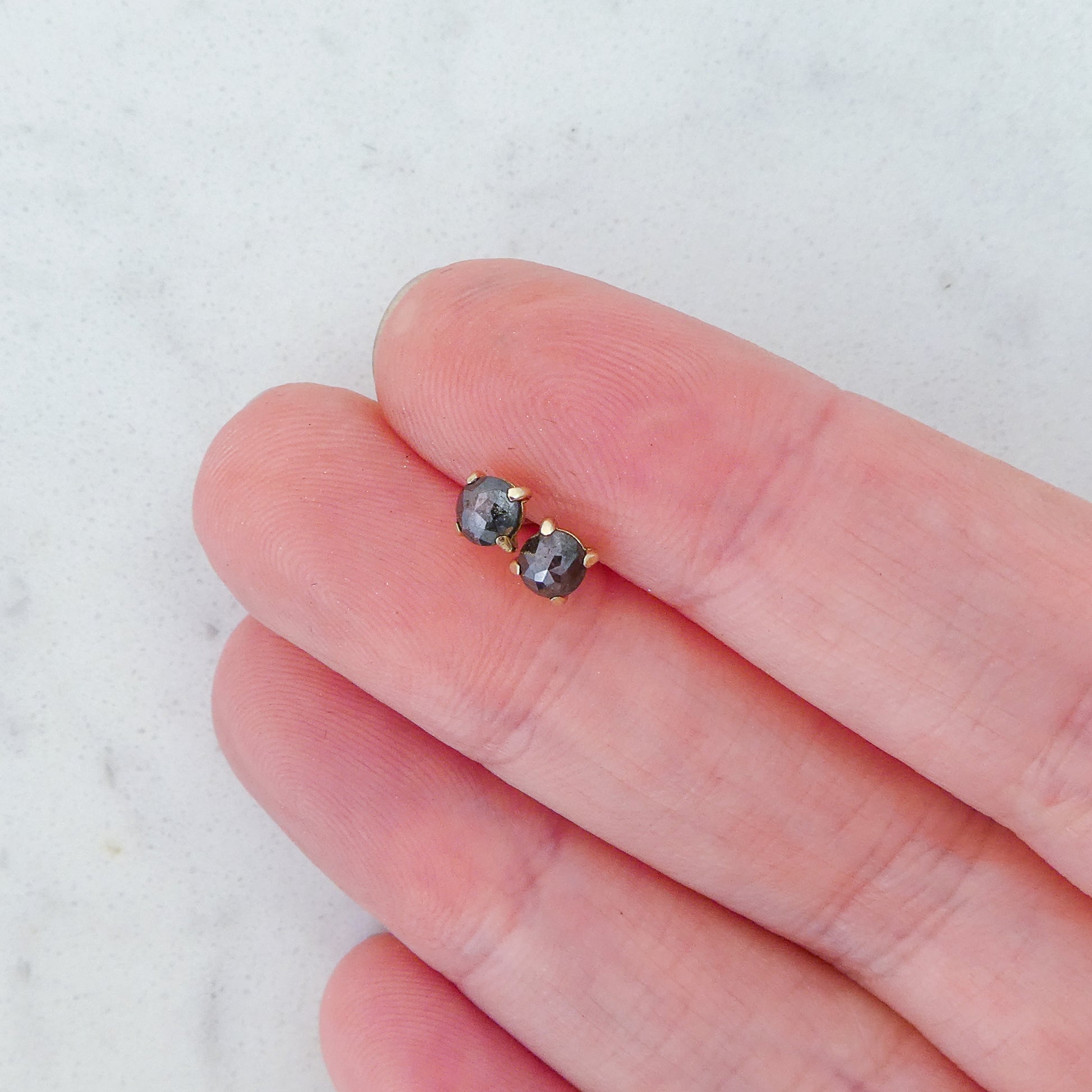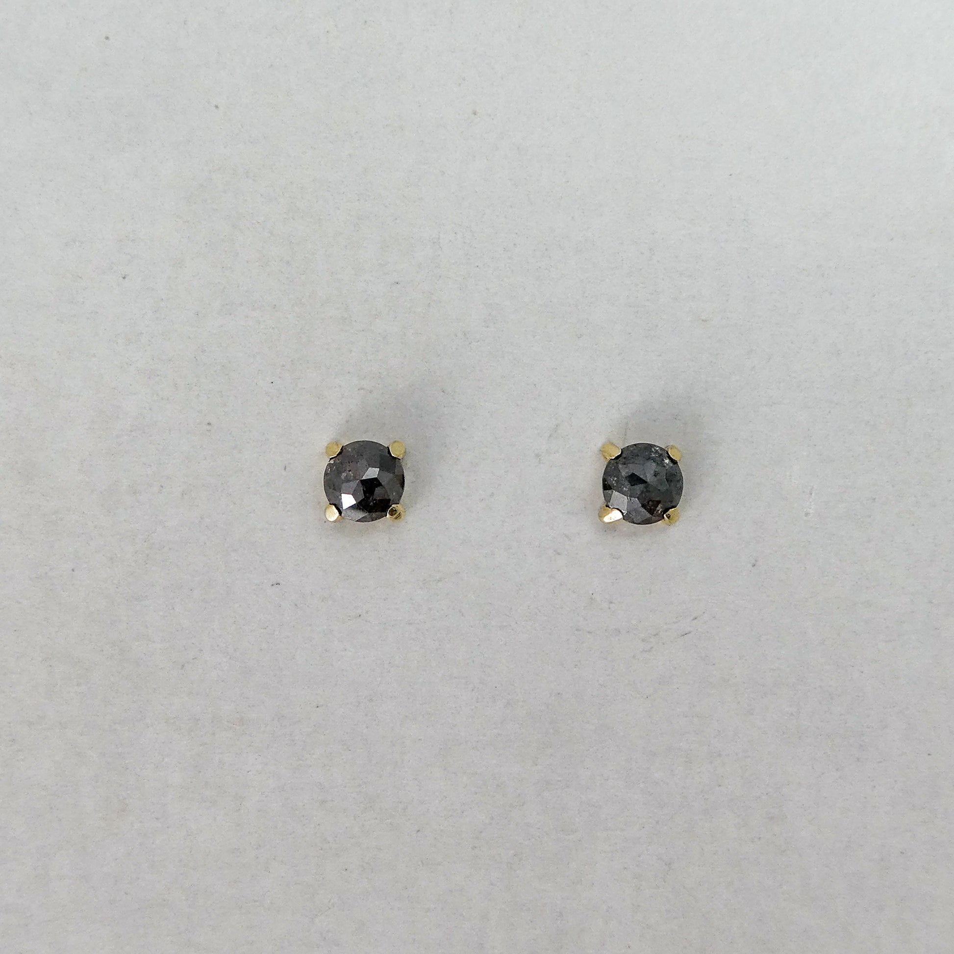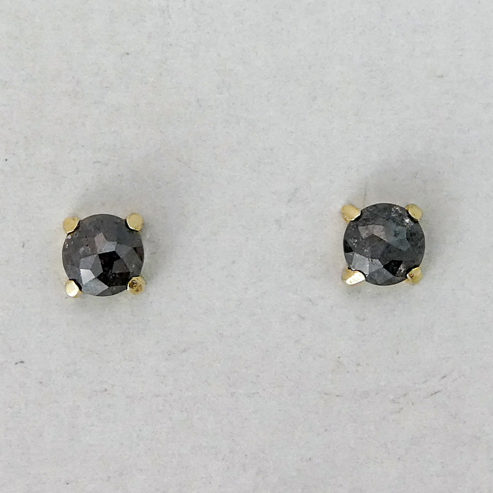 Rose-Cut Black Diamond and 14k Yellow Gold Prong Studs - 4mm rose cut diamond 4-prong stud Earrings | Ready to Ship